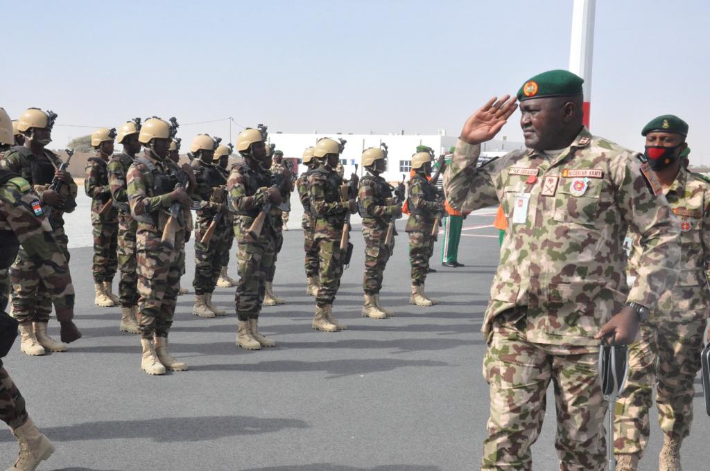 On Wednesday, 29 Dec 21, the Force Commander, MNJTF, Maj Gen Abdul Khalifah Ibrahim on a debriefing mission visited the MNJTF Headquarters in Diffa Niger Republic where he addressed the officers and men after receiving an after action brief by the Operational Commanders. He commended the uncommon display of gallantry professionalism and courage by the troops who have taken the fight to the criminals hideouts in their areas. He said after listening to the brief, that a lot still needs to be done but this was a good starting point. He promised to mobilise more equipment and other operational enablers to the Sectors. He declared year 2022 as a year of decision for the MNJTF as he vowed to uproot the criminals from their hideouts in the lake. He paid tribute to the fallen heroes whom he described as martyrs of freedom. He appealed to the people of the Lake Chad Basin to continue to support the MNJTF and to bring forward information. He further assured them of the MNJTF resolve to clear the operational area and make it safe for all in the coming year in compliance with directives of the Service Chiefs of the Lake Chad Basin Countries. He was accompanied on the visit by the Deputy Force Commander MNJTF, Gen Abdou Assoumane (Niger) and other key commanders of the MNJTF.