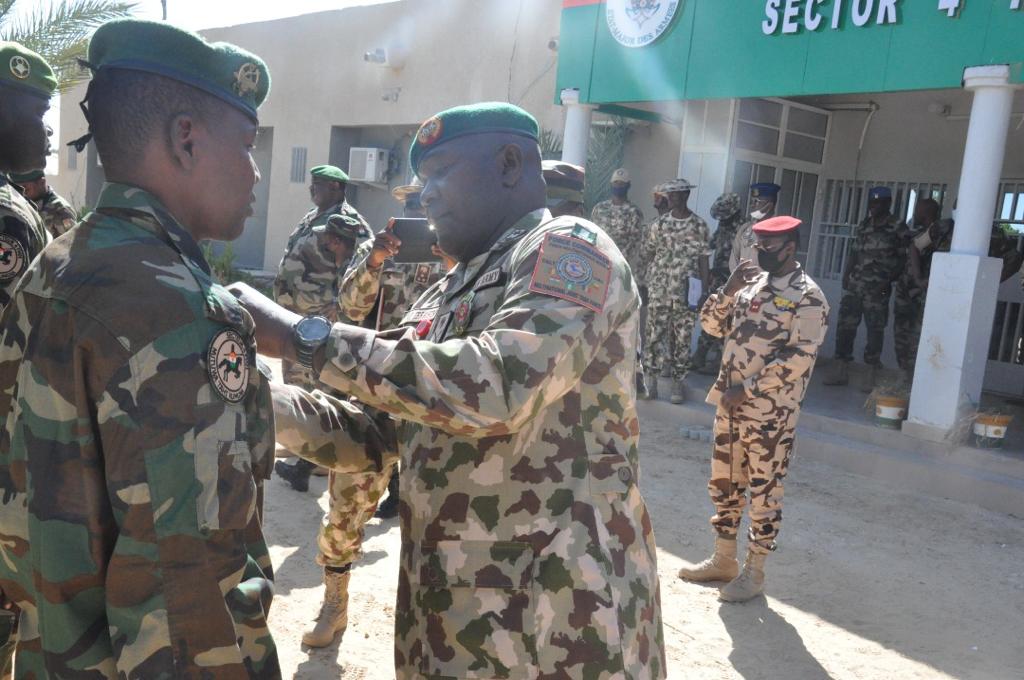 Relatedly, in the side line of this visit the FC alongside other MNJTF senior officers decorated some rotating staff of the MNJTF Sector 4 with the MNJTF medal of service. He thanked them for their meritorious service. The visit was rounded with a virtual conference with Ambassador Bankole Adeoye, Commissioner for Political Affairs of the African Union Security Council in Addis Ababa who thanked the FC and DFC for their untiring efforts and asked that his best wishes and End of Year/New Year greetings be passed to all members of the MNJTF in all the countries. He charged the MNJTF to do all it can within its powers to end the crisis in the Lake Chad Basin area soonest. He assured of the continuous support of the AU Headquarters in achieving this. Visit was hitchfree and the FC has safely returned to his Headquarters in N’Djamena Chad.